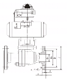 Q641F-16型氣動球閥主(zhu)要尺寸及(ji)執行器配置(zhi)